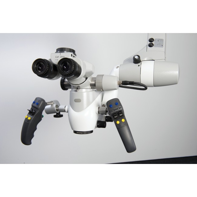 Операционный микроскоп OPMI PROergo с моторизованной системой увеличения и фокусировки и вариоскопом с плавным изменением рабочего расстояния от 200мм до 415мм, встроенными зеленым и оранжевым фильтрами,  на передвижном напольном штативе S7 со встроенным источником света (Галоген) с возможностью выставления трех  различных диаметров освещенности операционного поля, многофункциональными программируемыми ручками управления, поворотным тубусом, широкоугольными окулярами 12,5х, с возможностью электро-магнитной блокировки положения микроскопа