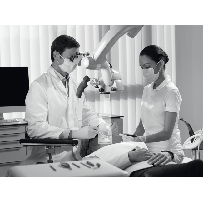 Вы можете уменьшить перегрузку, правильно расположив себя, своего пациента и свой стоматологический хирургический микроскоп. 77% стоматологов подтвердили, что использование стоматологического хирургического микроскопа для увеличения в стоматологии положительно влияет на боль в шее и спине 2.