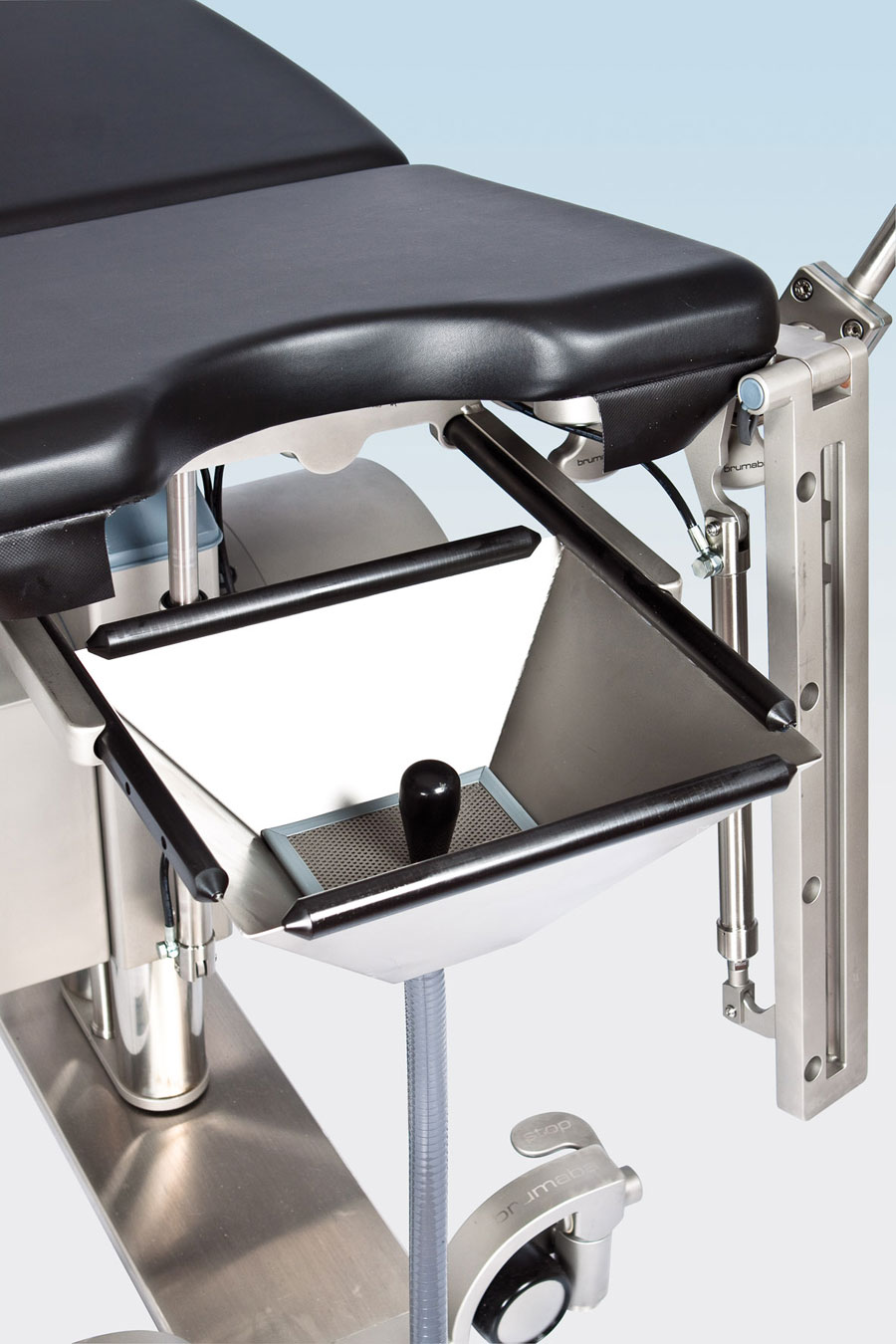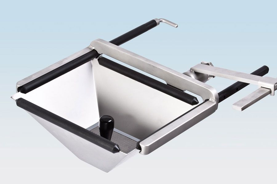Удобный лоток, разработанный специально для модели стола „VARIUS", для проведения любых урологических процедур, с возможностью слива и промывки. Лоток из нержавеющей стали имеет сетчатый фильтр, систему подачи и отведения воды, а также продуманную систему складывающихся секций для компактного хранения в случае, если нет надобности в его использовании. Расширяющаяся кверху V-образная форма лотка обеспечивает оптимальную защиту от брызг для лечащего врача.