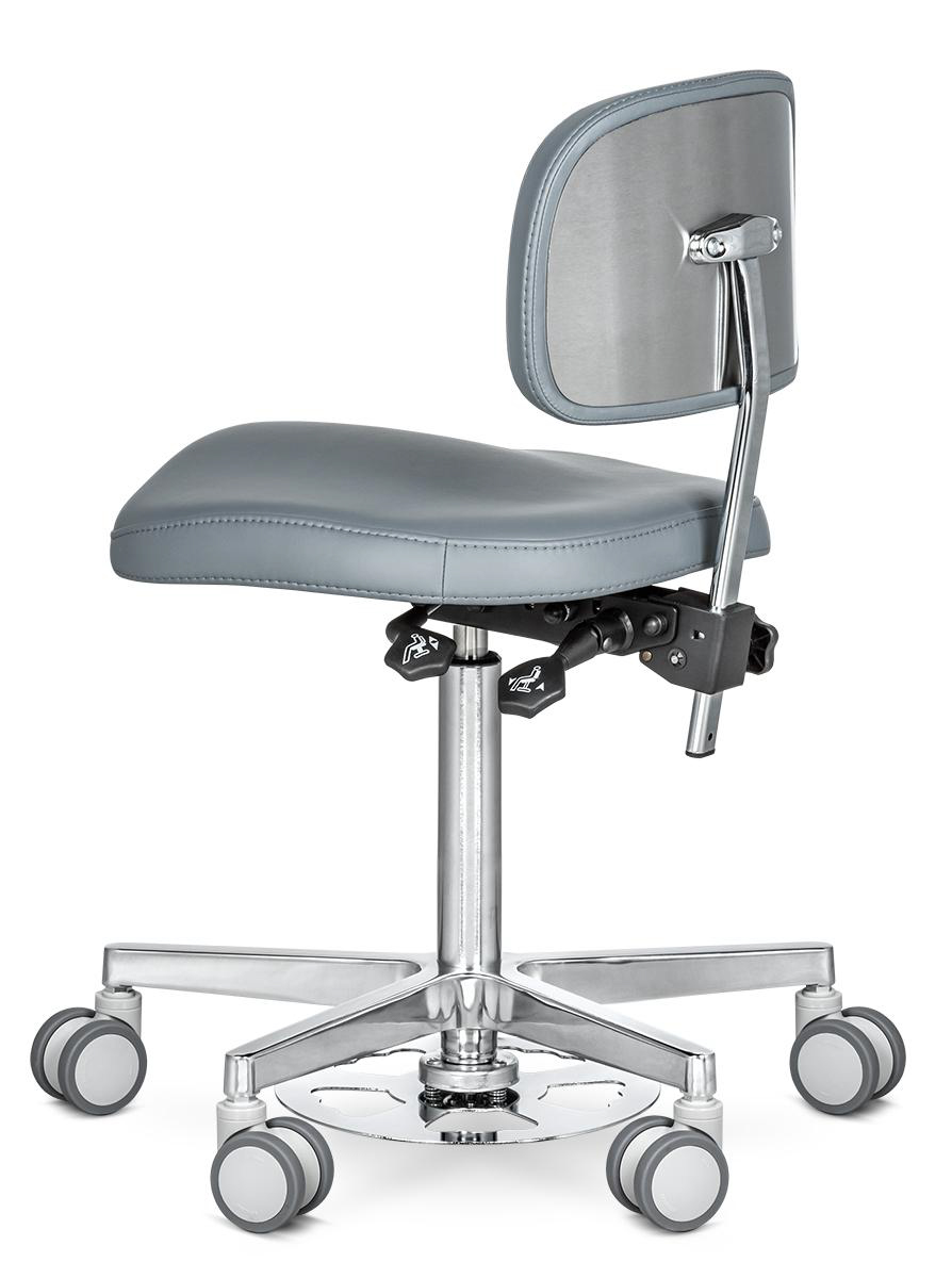 Стул ассистента MERCURY B оснащён возможностью настраивать его положение в зависимости от индивидуальных особенностей человека. В первую очередь это касается спинки, которая может отклоняться на довольно большой угол. Также есть возможность регулировать высоту кресла по вертикали, в следствие чего стул подойдёт для людей разного роста. Соединительные детали выполнены из нержавеющей стали, а при производстве сиденья используется литьевая пенополиуретановая смесь, которая позволит ему держать форму более 5 лет