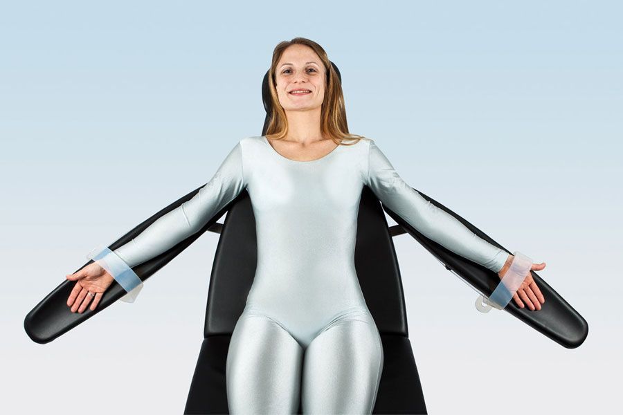 Особенно в хирургии молочной железы является типичным так называемое положение в виде «креста» с разведенными в стороны руками. Удлиненные подлокотники позволяют снизить давление в верхней части руки. Эта модель также оснащена двум шаровыми шарнирами и эксцентриковым рычагом.