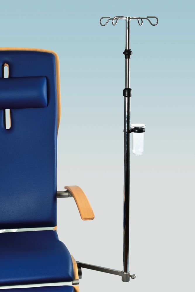 Для транспортировки инфузионных пациентов рекомендуется так же стабильная, как и легкая инфузионная стойка. Кронштейн кронштейна крепится сбоку к раме. На нем подставка может быть отрегулирована как по высоте, так и развернута. Incl. Кружка.