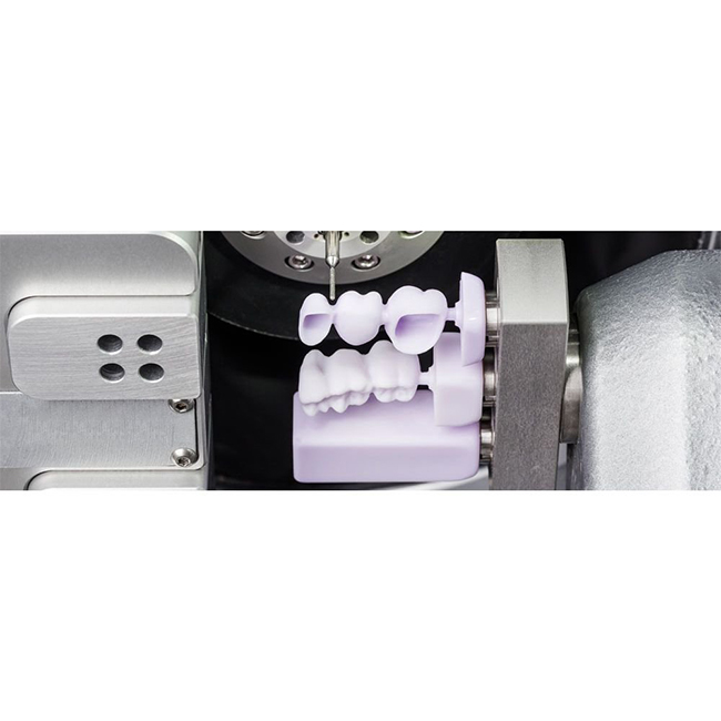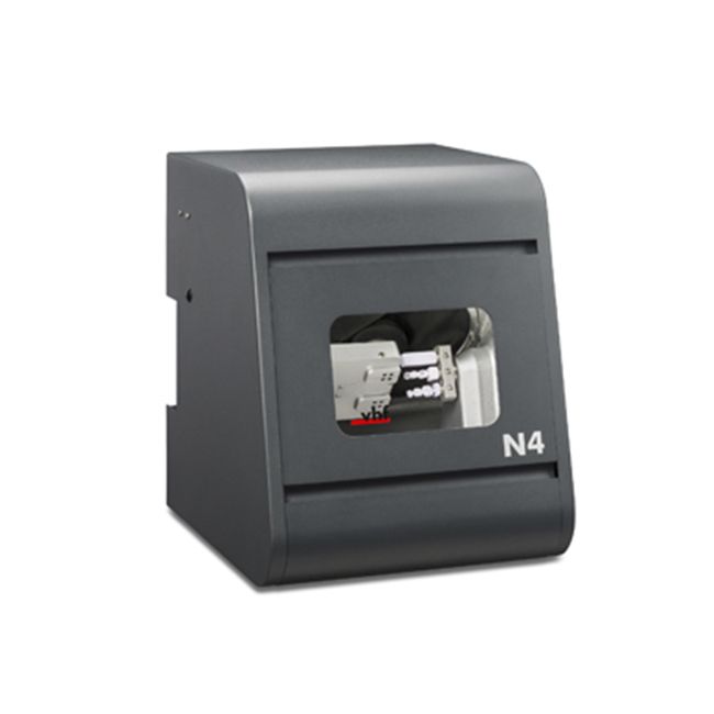 N4 - 4-осный шлифовальный станок для влажной фрезеровки от компании VHF. Обладает компактными размерами и водяным охлаждением. Работает с такими материалами, как стеклокерамика, титан, композиты. Используется для изготовления коронок, мостов, накладок, виниров, вкладок, абатментов, телескопических коронок.
