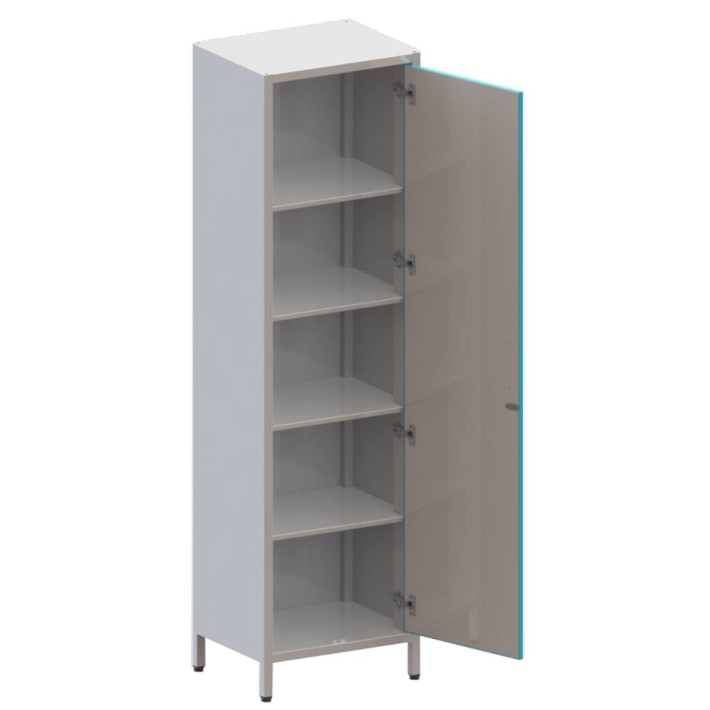 Одностворчатый. Дверь с замком, внутри 4 стационарные полки.