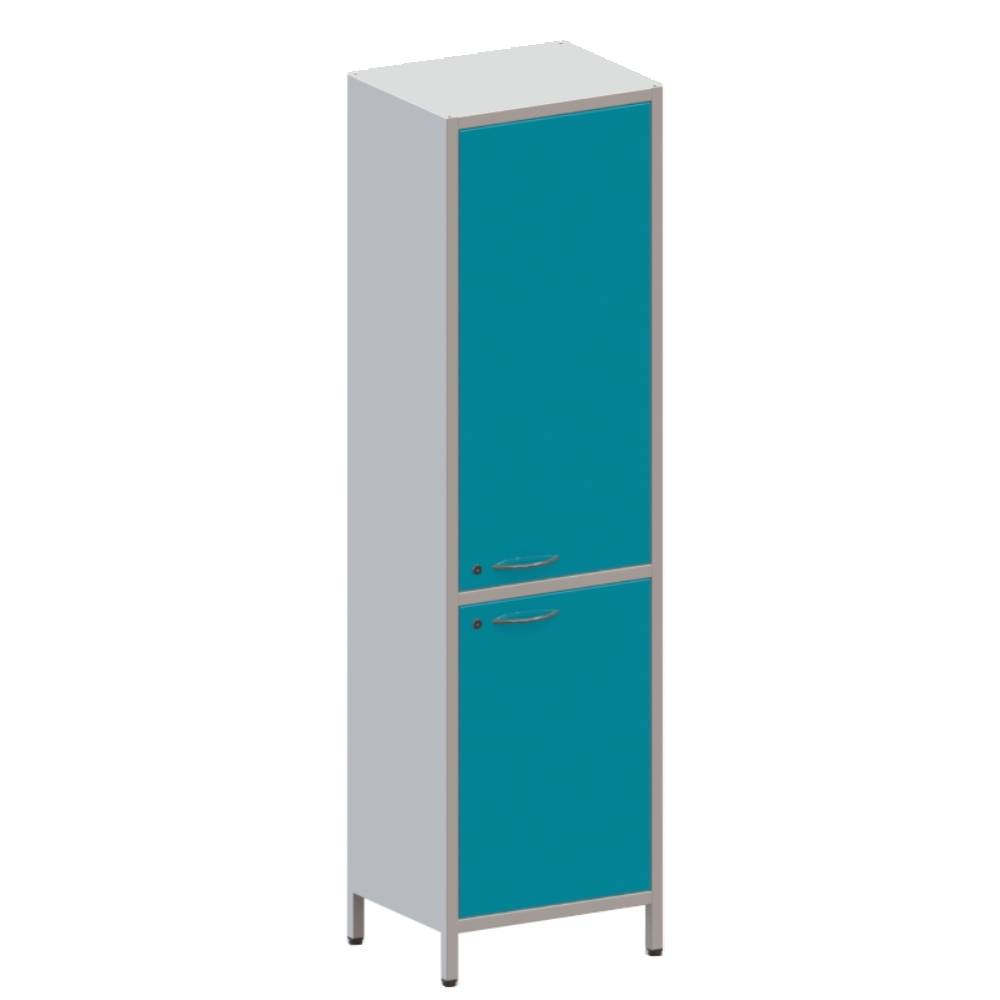 Одностворчатый. Верхняя секция с 2 стационарными полками. В нижней секции 1 стац. полка. Обе двери с замком.